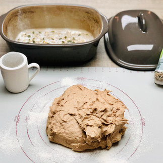 Zutaten: 530 g Wasser 20 g frische Hefe 500 g Mehl Type 405 250 g Waldstaudenroggen Vollkornmehl oder Vollkornroggenmehl 1 TL Zucker 3 gestrichene TL Salz 2 gestrichene TL Bio Vollkorn Roggen Sauerteig Pulver Etwas Bio Kerne Mix Zubereitung: Wasser, Zucker und Hefe in den Thermomix geben und 3 Minuten/37°C/Stufe 2 rühren Restliche Zutaten (außer den Kernen) hinzufügen und 5 Minuten/Teigknetstufe kneten lassen Danach den Teigling auf die mit dem Streufix bemehlte Teigunterlage geben und auf den Teigling noch etwas Mehl stäuben und mit der flexiblen Teigunterlage/Backmatte von Pampered Chef® den Teig ein paar Mal falten. Fette deinen Ofenmeister hauchfein mit etwas Rapsöl ein und bemehle danach mit etwas Mehl aus dem Streufix – streue dann den Kerne-Mix auf den Boden vom Ofenmeister Nach dem falten des Teiglings bringst du den Teig Laib auf Oberflächen Spannung Nun setzt du den Teigling in den Ofenmeister und bestäubst den Laib mit Mehl und ritzt dann mit einem scharfen Messer ein Muster ein. Deckel auflegen und den Teig an einem warmen Ort ca. 30 Minuten Ruhe gönnen In der Zwischenzeit heizt du deinen Backofen auf 230°C/Ober-/Unterhitze auf/Rost/unterster Einschub/für ca. 60 Minuten backen Bleibe dabei auf Augenkontakt, denn jeder Backofen liefert ein anderes Ergebnis. Viel Spaß beim Nachbacken Martina Ziehl mit Pampered Chef