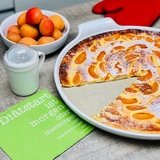 Aprikosen-Quark-Kuchen gebacken auf dem großen runden Stein White Lady