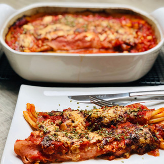 Schinken-Käse-Makkaroni Röllchen mit schneller Tomatensoße