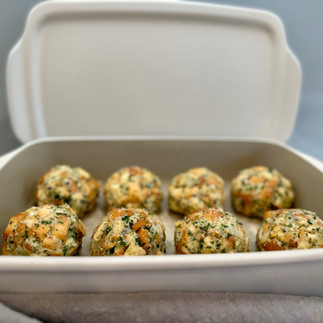 Forme aus der Knödelmasse 14 gleichmäßig große Knödel und lege diese in die jeweilige Form - Deckel auflegen und in den vorgeheizten Backofen einschieben